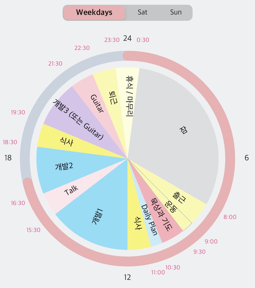이런 생각을 하다가 문득, 초등학교 시절 방학 때마다 학교 선생님이 작성하라고 숙제로 내주셨던 원형의 하루 일과표가 생각났다. 사실 초등학교 졸업 이후에는 내 자의적으로 이런 일과표를 작성해 본 적이 없었다. 학창 시절에는 방학 때 외에는 이런 일과표가 필요 없었고, 성인이 되어 직장 생활을 할 때는 하루의 근무 시간 중에 해야 할 과업을 To do 리스트로 관리하는 게 더 효과적이라고 생각해 왔다.